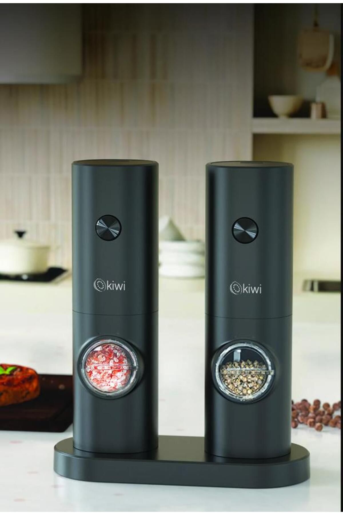 Kiwi Pilli Işıklı Tuz Karabiber Değirmeni Otomatik Baharat Öğütücü 2li Paket (SİYAH) Kspg-4850 için 20 değerlendirme