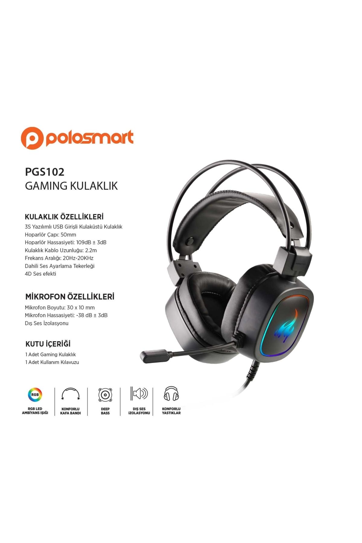 Polosmart Kablolu Rgb Led Ambiyans Kulak Üstü Gaming Kulaklık PGS102 için 1 değerlendirme